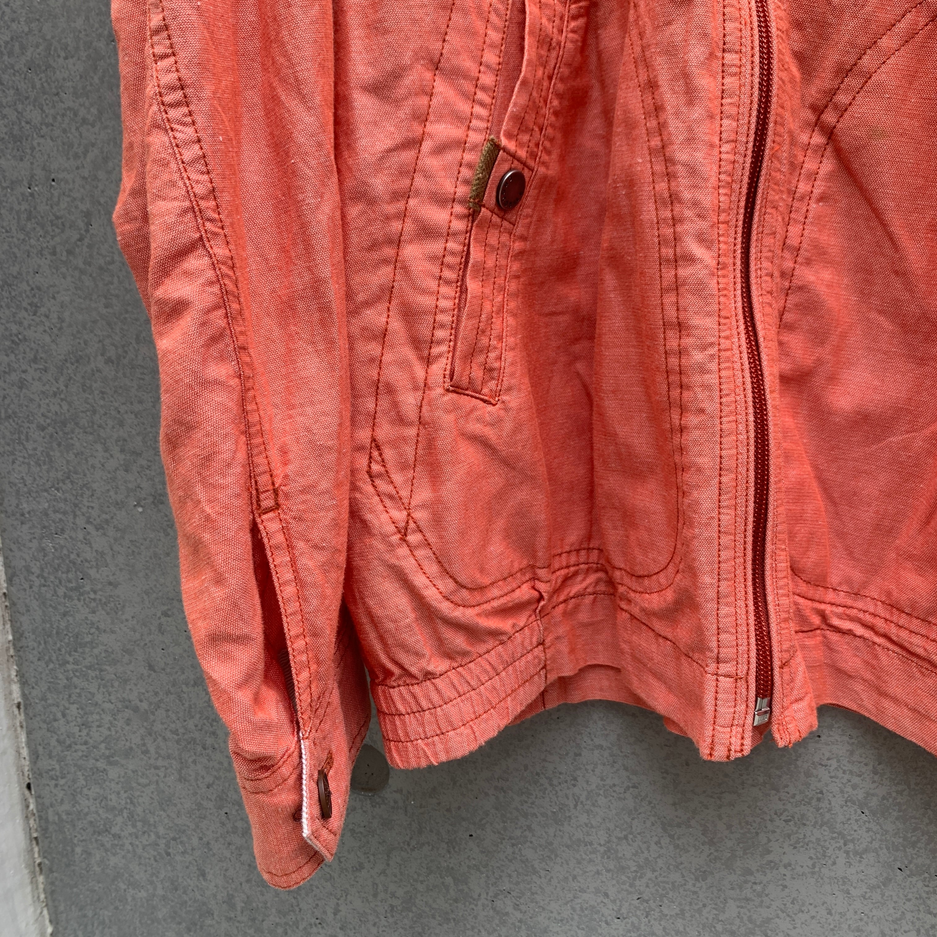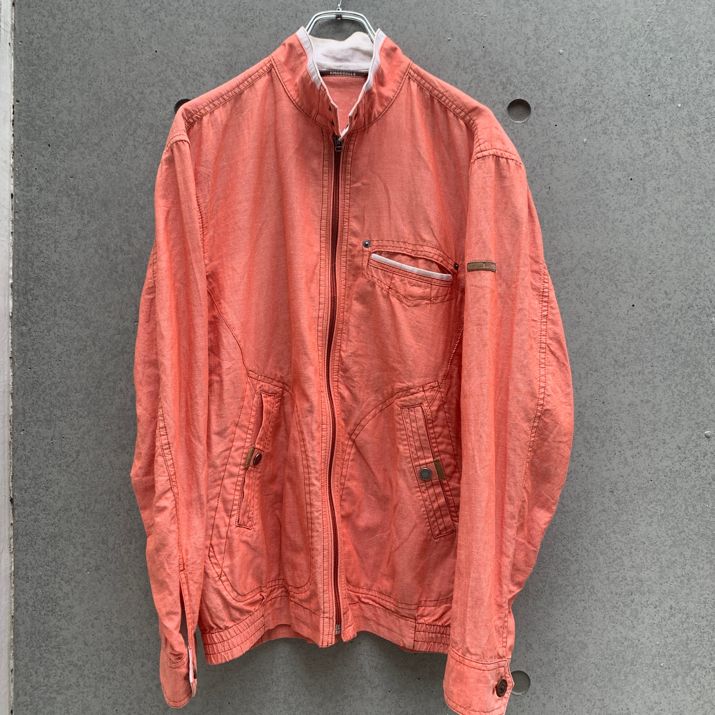 サーモンオレンジの綺麗なカラーのリネンジャケット。