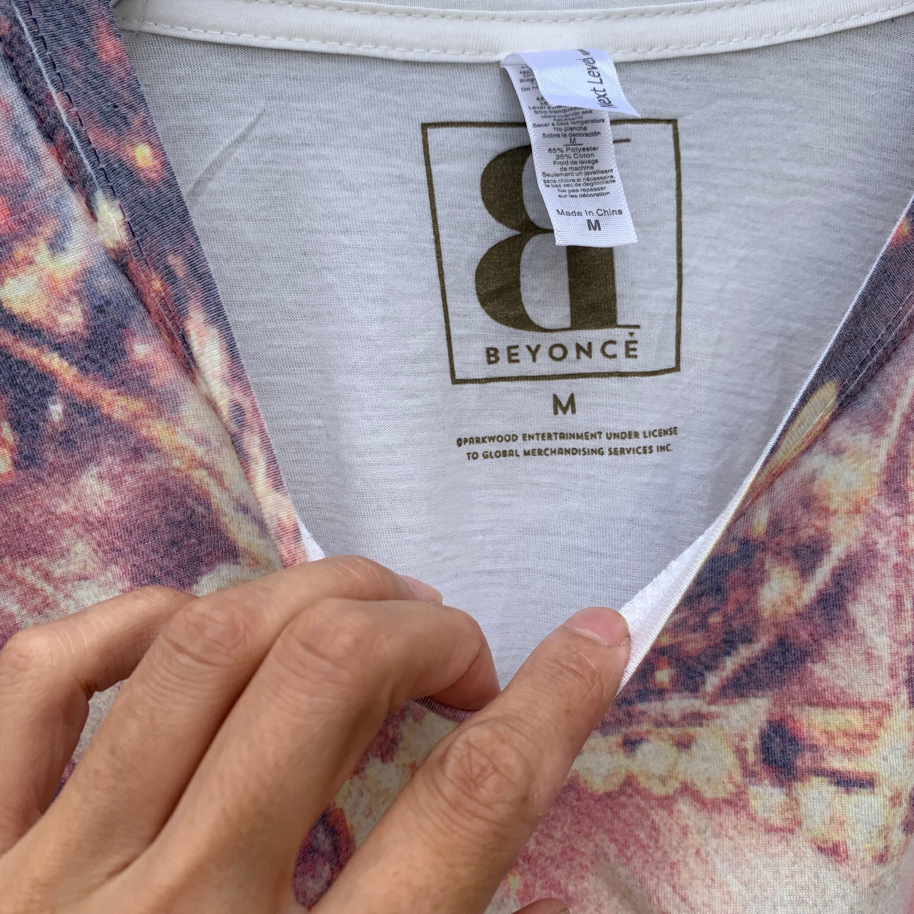 Beyonce's face T-shirt.