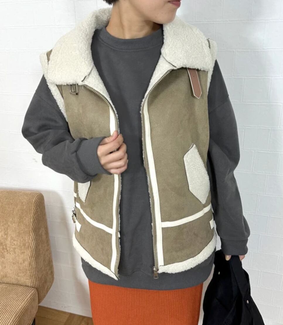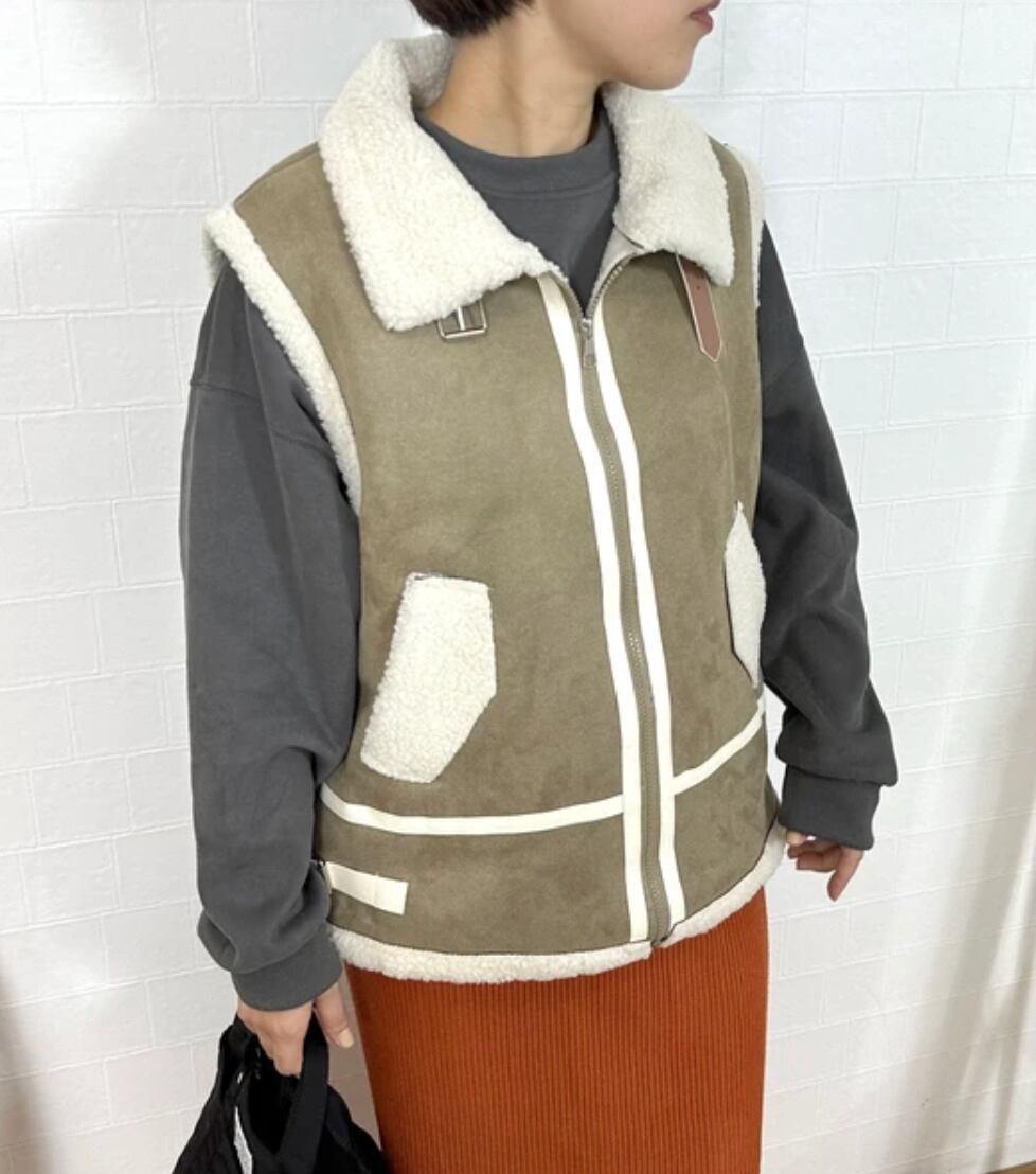 ■ ボリューム感たっぷりなシーズンライクなムートンベスト。