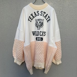 ナンバーミーTOKYO" TIGER PATTERN SWEAT DOCKING KNIT PULLOVER"IVORY