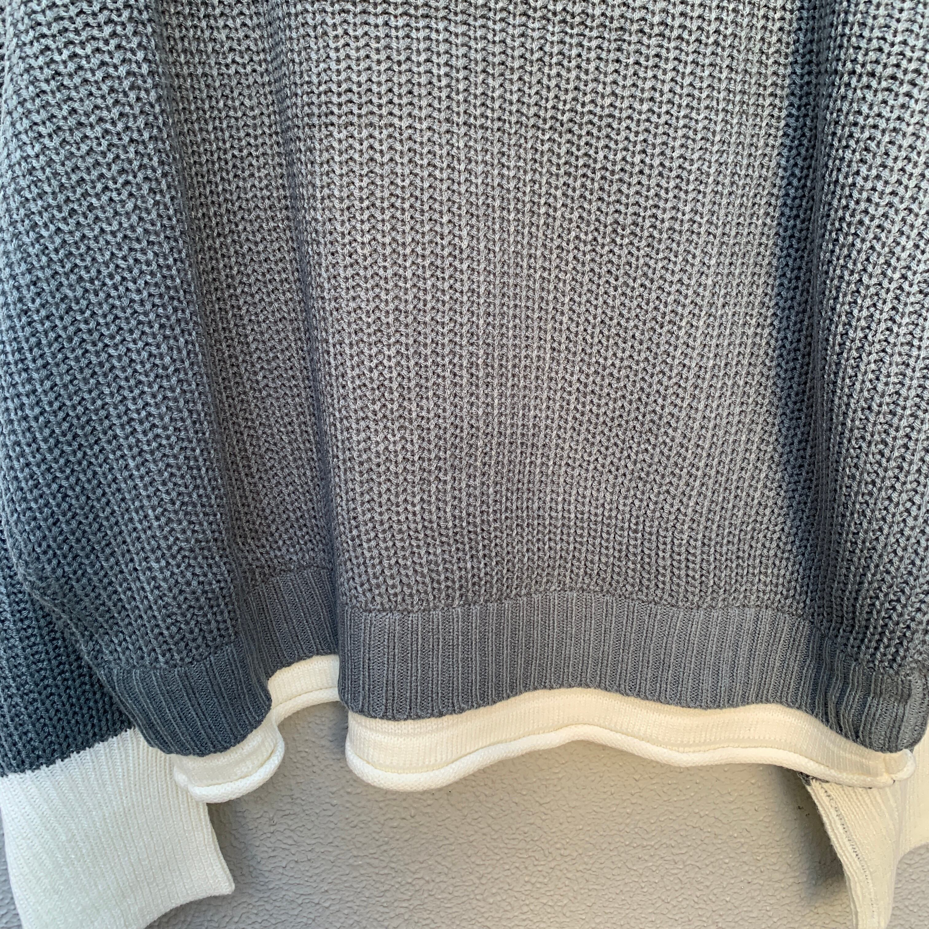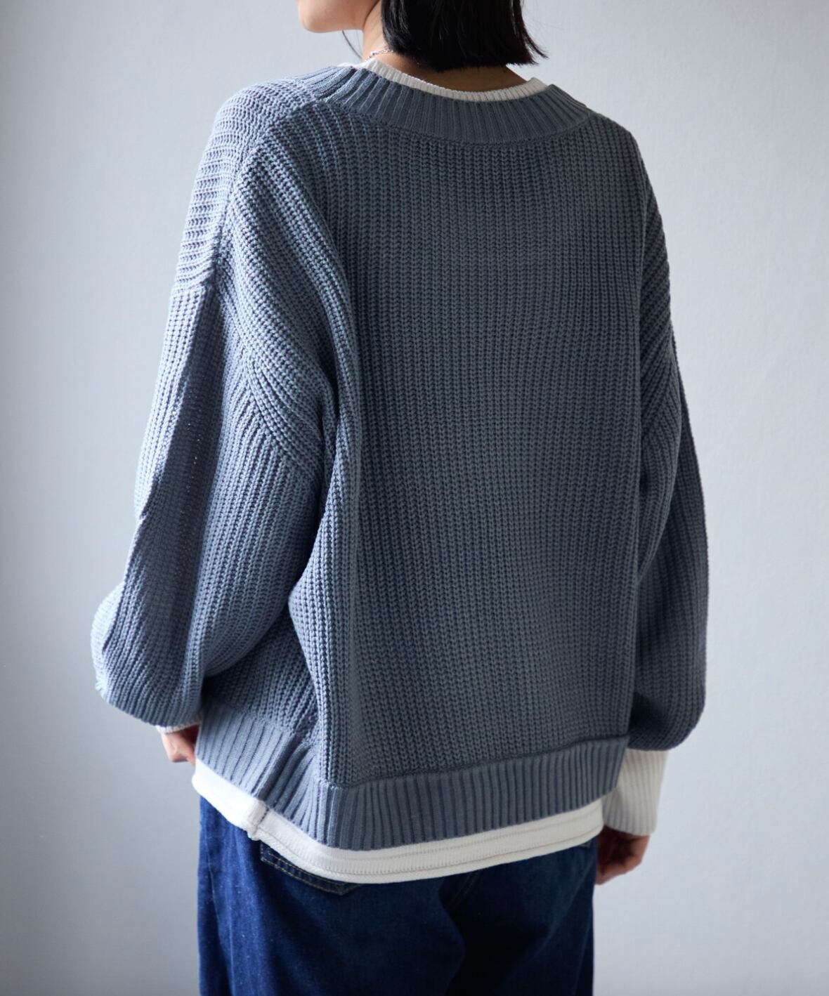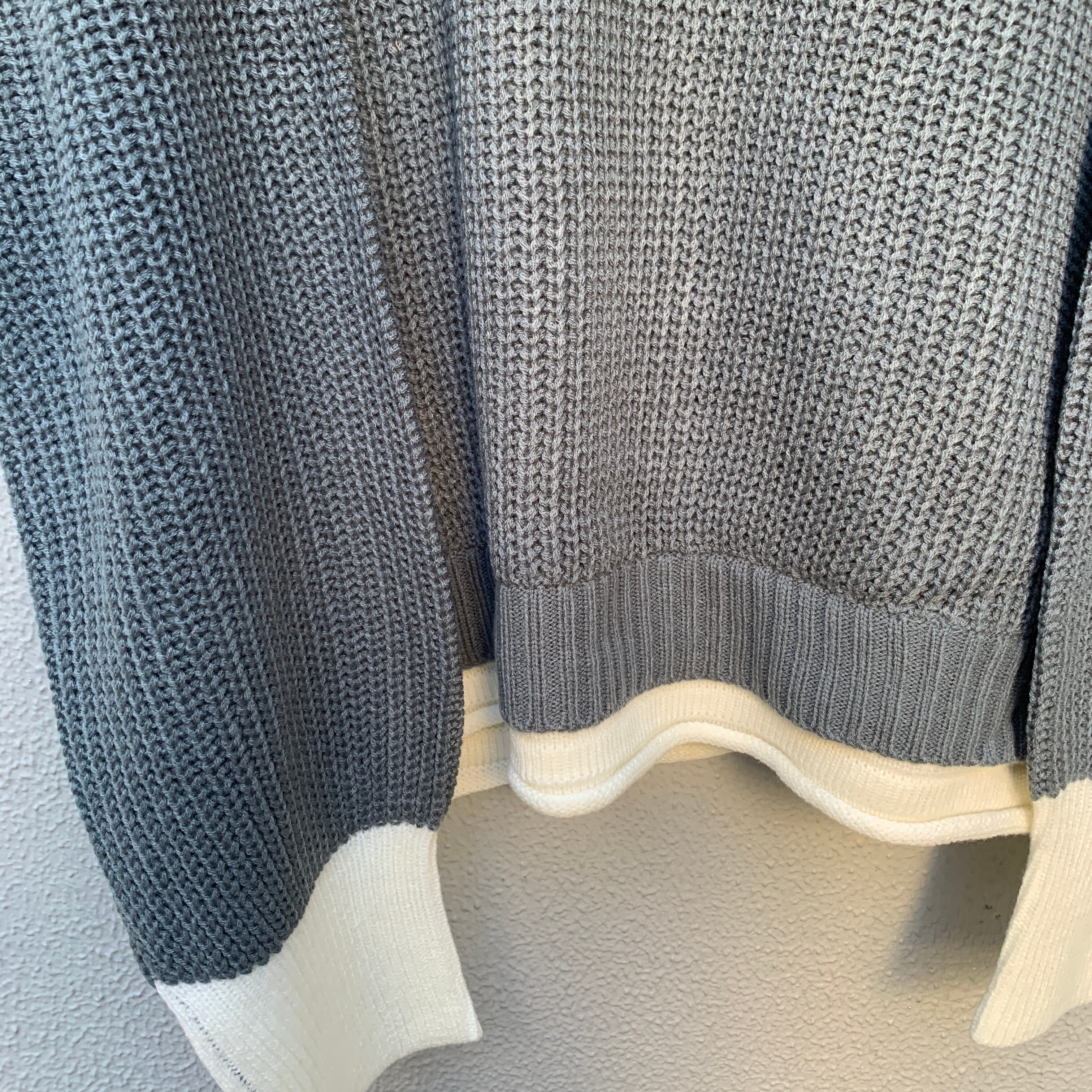 A knit with a design that makes you feel like you're layering just by wearing one piece. The key point is the color scheme on the neck, sleeves, and hem.